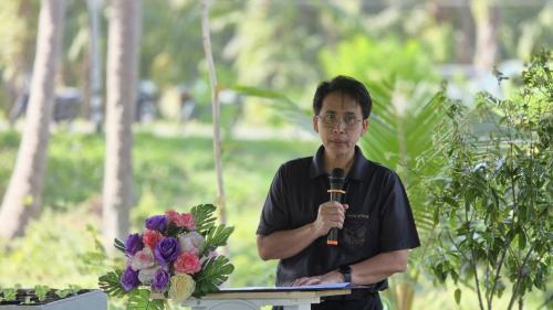 จากนั้น นางสาวกุลณิศ ศรีวชิรวัฒน์ พัฒนาการจังหวัดประจวบคีรีขันธ์ กล่าวรายงานถึงวัตถุประสงค์ของการจัดกิจกรรม ซึ่งมุ่งเน้นการสร้างจิตสำนึกด้านการอนุรักษ์ทรัพยากรธรรมชาติ การส่งเสริมเศรษฐกิจฐานราก และการเสริมสร้างความมั่นคงทางอาหารในระดับครัวเรือนและชุมชน ควบคู่กับการป้องกันและแก้ไขปัญหายาเสพติดอย่างยั่งยืน