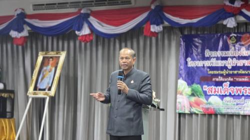 ทั้งนี้ ผู้ว่าราชการจังหวัดกล่าวให้กำลังใจผู้เข้าร่วมกิจกรรม พร้อมเน้นย้ำความสำคัญของการทำงานเชิงรุกในพื้นที่ การใช้ศักยภาพทรัพยากรท้องถิ่นอย่างคุ้มค่า และการสร้างการมีส่วนร่วมของประชาชน เพื่อให้ชุมชนมีความเข้มแข็ง สามารถพึ่งพาตนเองได้ และพร้อมรับมือกับความท้าทายต่าง ๆ ที่จะเกิดขึ้นในอนาคต ก่อนมอบประกาศนียบัตรแก่ผู้นำอาสาพัฒนาชุมชนดีเด่น จากนั้นผู้ว่าราชการจังหวัด พร้อมด้วย แพทย์หญิงบุษกร สวัสดิ์แสน นายกเหล่ากาชาดจังหวัดประจวบคีรีขันธ์ นำคณะ ทำกิจกรรมสานต่อพระราชปณิธาน "สมเด็จพระพันปีหลวง" ด้วยกิจกรรมสร้างความมั่นคงทางอาหาร ณ สำนักงานเหล่ากาชาดจังหวัดประจวบคีรีขันธ์ ซึ่งผู้เข้าร่วมได้แสดงให้เห็นถึงความตั้งใจและแรงจูงใจในการพัฒนาชุมชนอย่างยั่งยืน ครอบคลุมทั้งด้านการผลิตอาหาร การจัดการทรัพยากรท้องถิ่น และการสร้างเครือข่ายระหว่างผู้นำอาสา เจ้าหน้าที่พัฒนาชุมชน และภาคีเครือข่ายอื่น ๆ